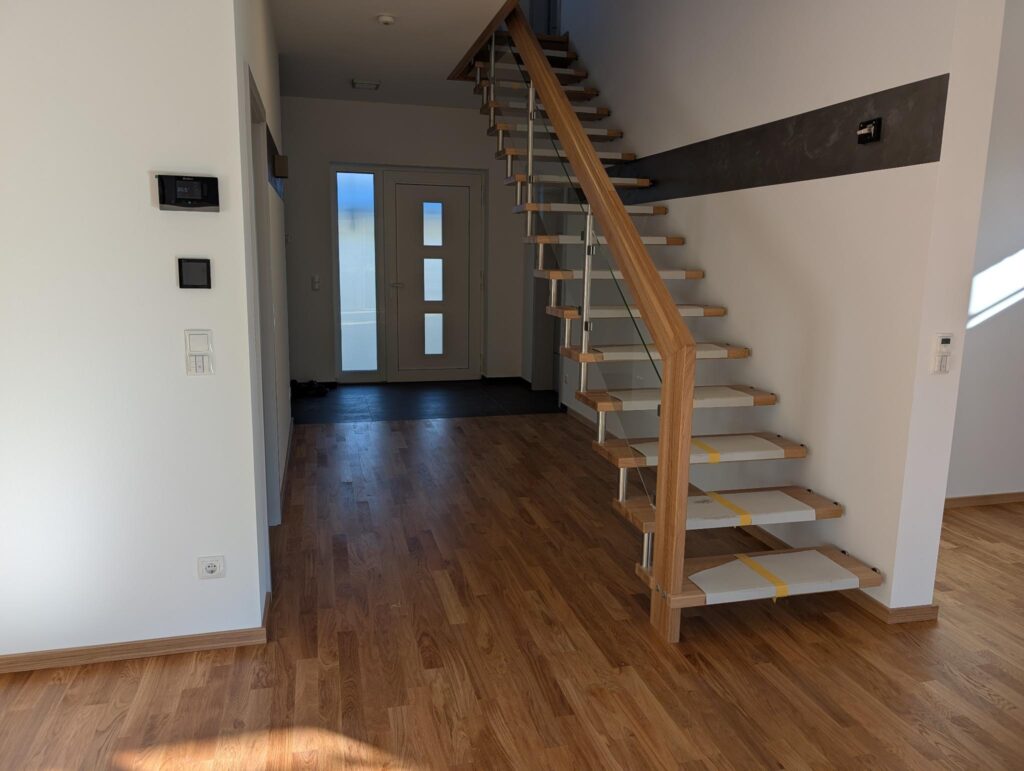 Der Umzug lief gut und schnell und da ja sonst schon so gut wie alles fertig war konnten wir in den nächsten Tagen alles nach und nach in die Räume verteilen und uns einrichten. Mittlerweile wohnen wir schon fast 6 Wochen hier und sind sofort angekommen. Wir fühlen uns in unserem Heim pudelwohl.